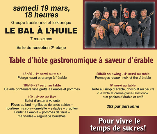 Au menu musical: « LE BAL À L’HUILE, Maudit que j’filais ben »